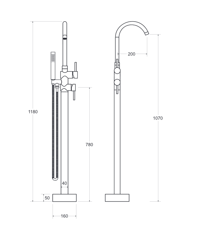 Besco - Polonia Baterie cada cu montaj pe pardoseala Besco Illusion, negru mat