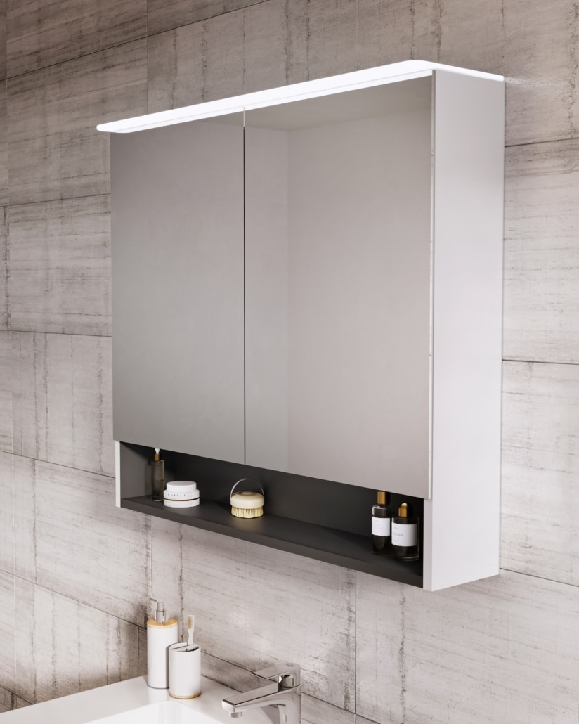 Dulap cu oglinda Beryl 80.2x71x15, 2 usi, alb mat n nDulap cu oglinzi superioare de 80 cm, iluminare cu LED doua zone de iluminare, un fascicul de sticla si partea inferioara a dulapului, doua rafturi din sticla, in interior pe usa din partea dreapta oglinda rotunda cu lupa. n n latime 802 mm n inaltime 710 mm n adancime.150 mm n O colectie de mobilier suspendat, conceputa pentru persoanele care cauta inspiratii noi si interesante. Beryl se caracterizeaza prin solutii atemporale ale manerelor . Fitingurile de inalta clasa asigura confortul utilizarii si cresc durabilitatea produsului. Doua sertare cresc ergonomia dulapurilor, iar posibilitatea de a utiliza lavoare din materiale diferite in acelasi dulap creeaza o gama larga de optiuni pentru clientii de astazi. In colectie apar dulapuri superioare cu oglinda , care impreuna cu celelalte elemente creeaza un design unic. n