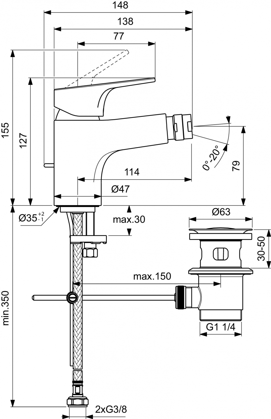 Ideal Standard - Belgia BATERIE BIDEU CERABASE CU VENTIL, CROM