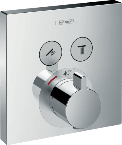 Ornament dus termostatic shower Select 2 iesiri pentru ibox univ., crom n n2 functii nSelectati butonul de pornire oprire buton pentru 2 prize nutilizarea simultana a mai multor prize ndebit de iesire superior 25 l min ndebit de iesire inferior 23 l min ncartus termostat, supapa de pornire oprire pentru functionarea functiilor nblocare de siguranta la 40 C nlimitarea temperaturii reglabila ntip conexiune set de baza nmin. presiune de lucru 1 bar nmax. presiune de lucru 10 bari nTermostatul este livrat cu dus de mana cu butoane si Rain large n nAtentie! Produsul reprezinta corpul exterior aparent! nPentru functionare necesita corp incastrat dedicat - care se achizitioneaza separat