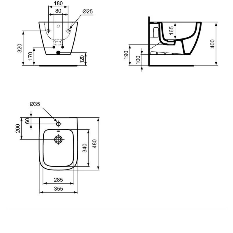 Ideal Standard - Belgia BIDEU I.LIFE S SUSPENDAT CU PROIECTIE SCURTA SI FIXARE COMPLET ASCUNSA
