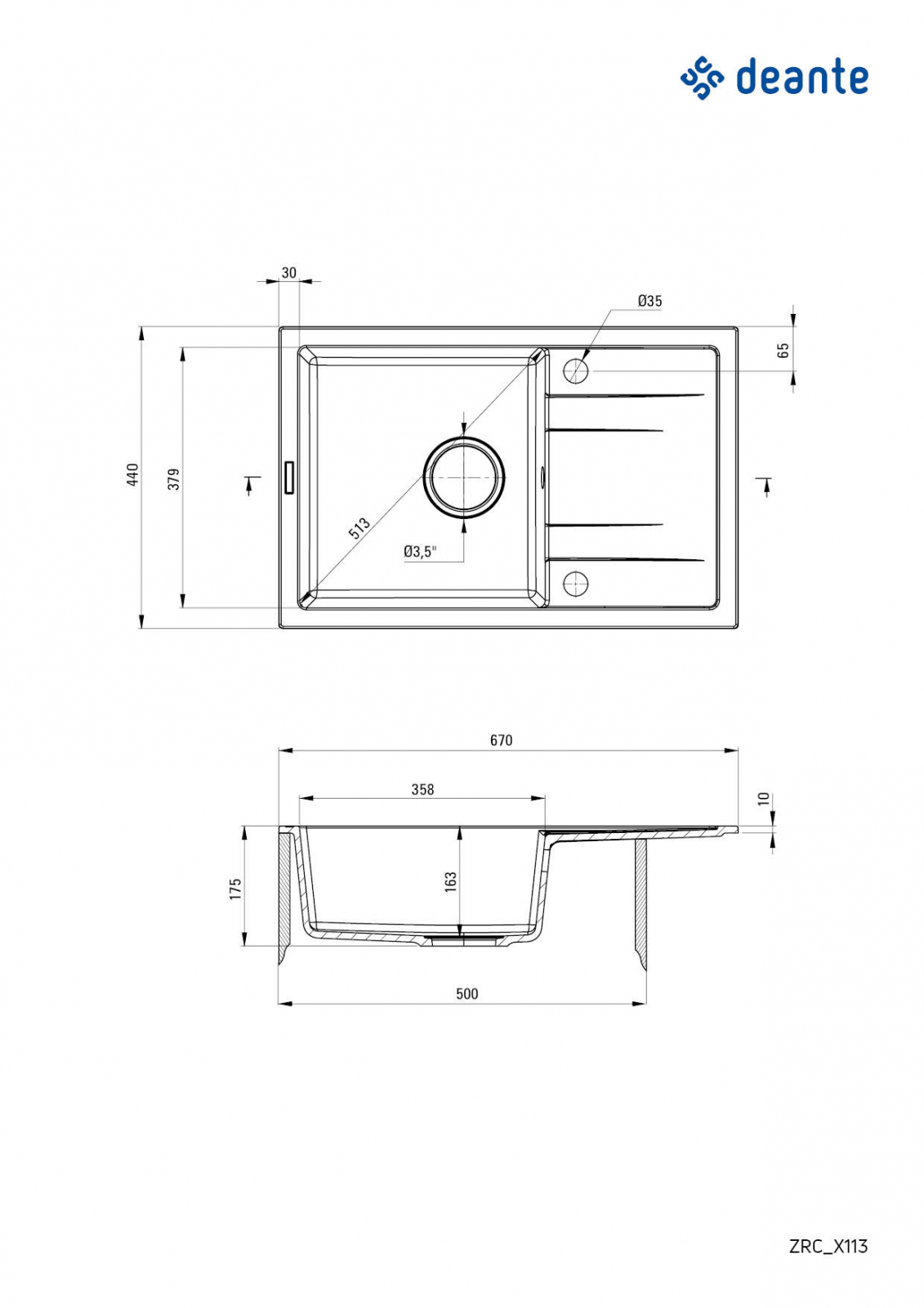 Deante-Polonia Chiuvetă din granit, 1-cuvă cu picurător, Deante, CORIO,GRAPHITE
