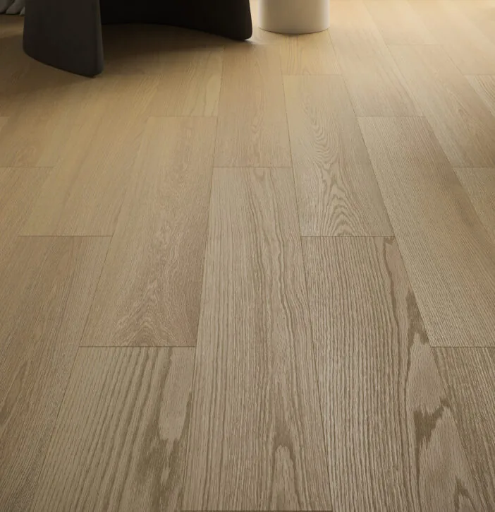 Substratul integrat economisește timp și costuri de montaj, oferind în același timp un plus de confort acustic. Aspectul natural de stejar deschis contribuie la crearea unui ambient luminos și echilibrat.