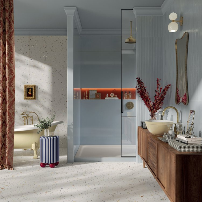 Faianta rectificata FAP Ceramiche Materia Riflessi Cielo Brillante este conceputa pentru amenajari interioare premium, unde luminozitatea si detaliile fine definesc spatiul. Nuanta Cielo, inspirata din tonuri deschise si aerisite, este completata de decorul Riflessi care adauga profunzime si dinamism. Finisajul lucios amplifica lumina naturala si creeaza un efect vizual elegant, potrivit pentru bai moderne, zone rezidentiale sau spatii comerciale sofisticate.