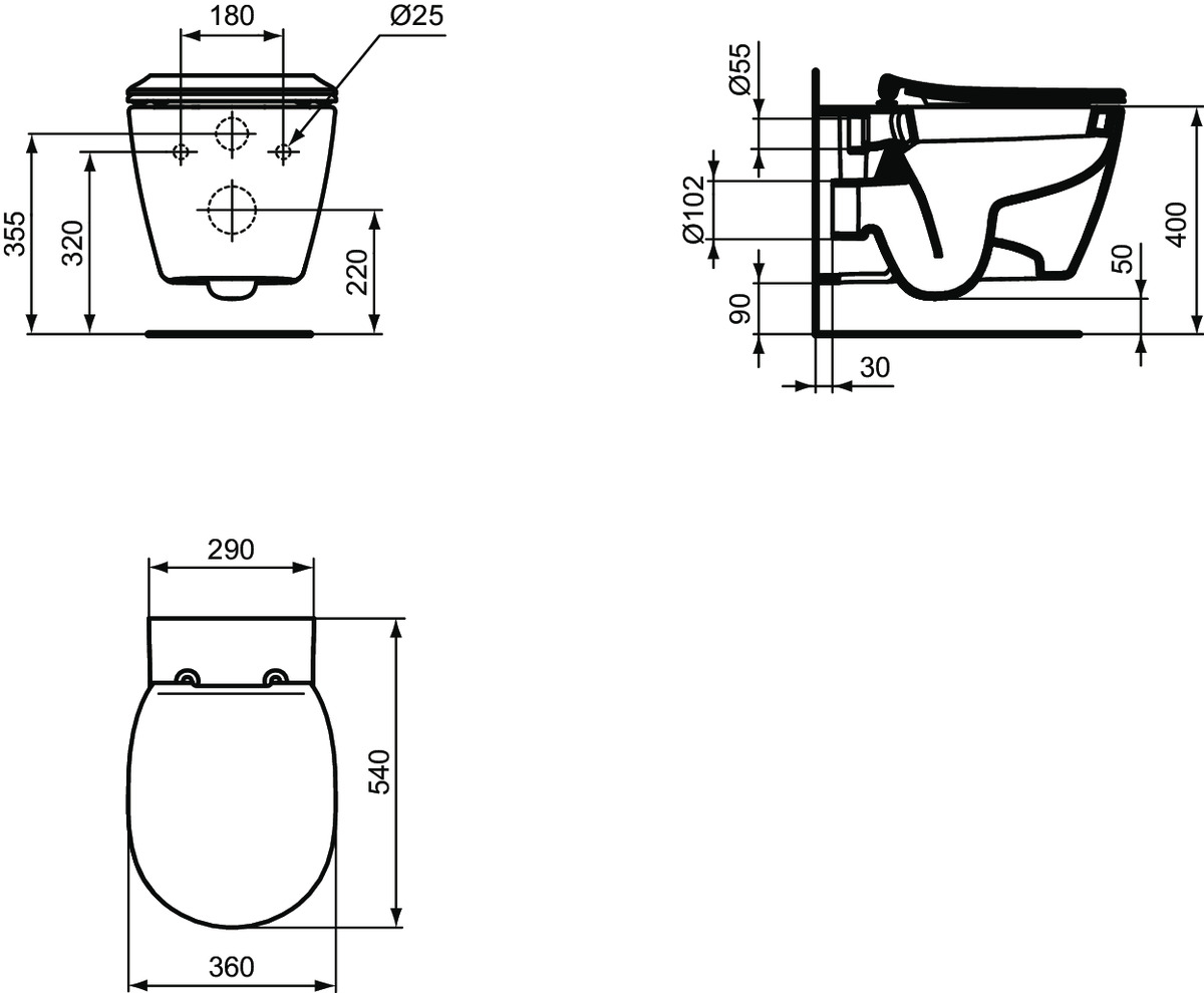 Vas wc suspendat Ideal Standard Connect 54x36 cm, prinderi ascunseCu fixare complet ascunsa Spalare verticala, scurgere orizontala Include set de fixare TT0299327 pentru o fixare complet ascunsa - fara gauri lateraleEchipare necesara - Capac vas WC SUBTIRE cu balamale metalice, duroplast E772301- Capac vas WC SUBTIRE, inchidere lenta cu balamale usor de detasat, duroplast E772401 - Capac vas WC cu balamale metalice, duroplast E712801 - Capac vas WC, inchidere lenta cu balamale usor de detasat, duroplast E712701
